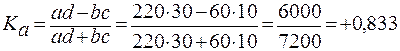 Для исследования степени тесноты связи между качественными признаками, каждый из которых представлен в виде альтернативных признаков, может быть использован коэффициент ассоциации Д. Юла или коэффициент контингенции К. Пирсона. Расчетная таблица в этом случае состоит из четырех ячеек (таблица «четырех полей») и имеет следующий вид: