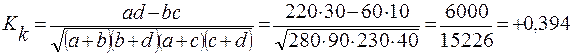 Полученные коэффициенты подтверждают наличие существенной связи между исследуемыми признаками. Однако коэффициент контингенции всегда меньше коэффициента ассоциации и дает более корректную оценку тесноту связи.