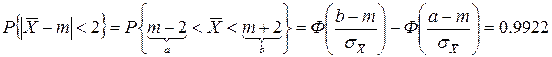 Пример. Автомат штампует детали, контролируется длина детали, которое подчиняется нормальному закону. Найти вероятность того, что средняя длина детали отобранных случайным образом отклонится от математического ожидания m на величину более чем 2 мм.