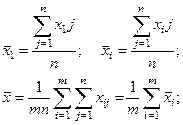 Имеется m станков, т.о. имеется m совокупностей. Из этих совокупностей мы проводим выборки объёмом n. Так, что значение параметров i-той совокупности i: