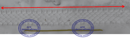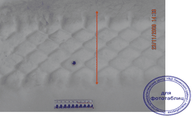 Рис. 38. Фотоснимок следа протектора ТС. Стрелкой красителем красного цвета указана длина окружности колеса