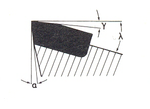 Угол врезания пластины (λ) желательно иметь больше переднего угла – это ускоряет переточку и уменьшает расход твердого сплава.