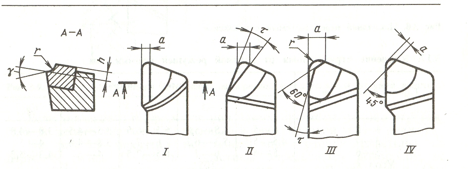 - нерегулируемые, из твердого сплава и припаянные к передней поверхности пластины (г),