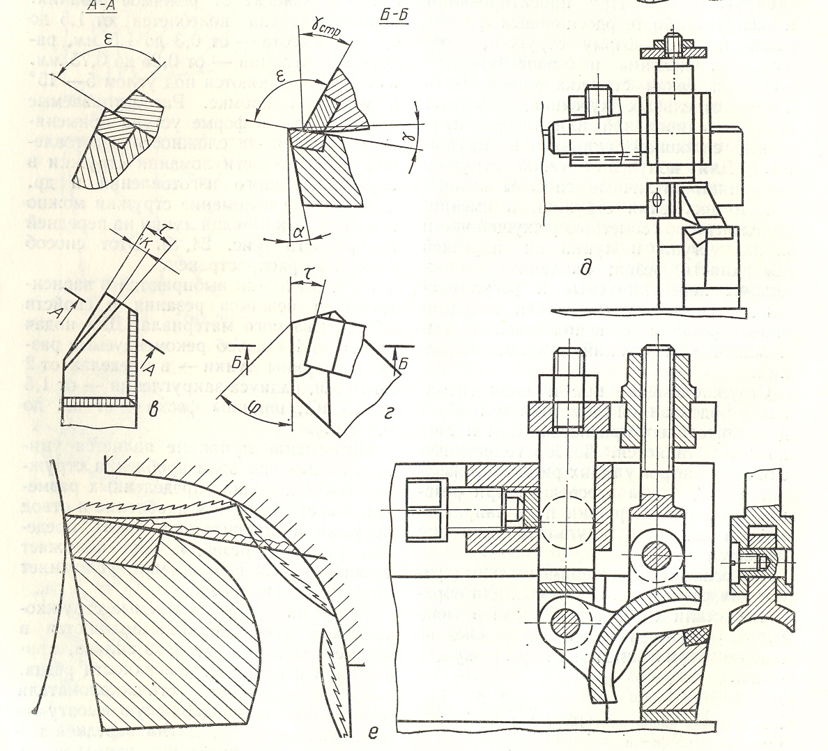 - регулируемые - более эффективны при различных режимах обработки (д, е).