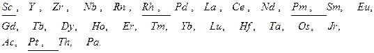 H, B, C, N, O, F, Na, Mg, Al, Si, P, S, Cl, K, Ca, V, Cr, Mn, Fe, Co, Ni, Cu, Zn, As, Se, Br, Sr, Mo, Ag, Cd, Zn, Sn, Sb, Te, J, Ba, W, Au, Hg, Tl, Pb, Bi, Ra, U.
