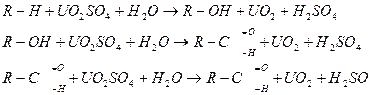 В области рН = 2-3 в сернокислых растворах уран (VI) может восстанавливаться органическими веществами, находящимися в породе, в частности, древесиной. В процессе углификации органического вещества от органики отщепляются такие продукты, как СО2, Н2О, NH4, H2S, тяжелые углеводороды. Почти все элементы, входящие в состав органических веществ и продуктов их углификации, обладают переменной валентностью (N, C, S) и в соответствии с этим - способностью участвовать в окислительно-восстановительных реакциях. Кроме того, восстановительной способностью обладают активные группы, входящие в молекулу органического вещества (спиртовые группы, альдегидные и т.д.)