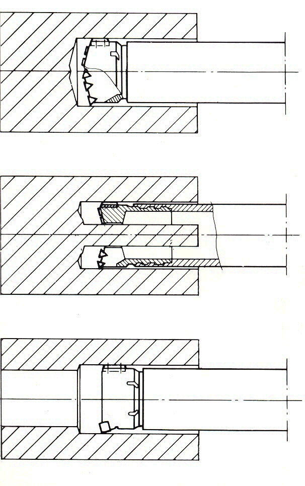 • кольцевое сверление также выполняется за одну операцию. В заготовке вырезается кольцевая полость, а в середине остается сердечник. При обработке больших диаметров снижается расход мощности и снижается осевая сила.