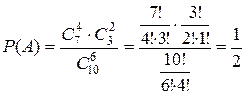 Общее число всех всевозможных элементарных исходов испытания равно числу способов, которыми можно извлечь 6 книг из 10 имеющихся, т.е. числу сочетаний из 10 элементов по 6 (