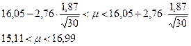 Итак, с вероятностью 0,997 можно утверждать, что сумма прибыли одного предприятия находится в границах (15,11; 16,99).