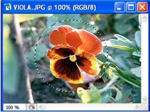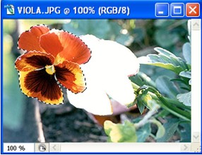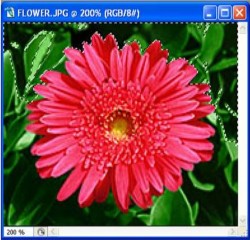 Для выделения фона вокруг цветка на рис. 4 достаточно щелкнуть Волшебной палочкой на зеленой листве, предварительно установив значение поля Tolerance(Порог) равным 150.