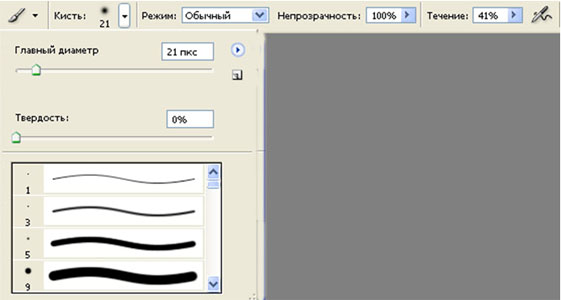 Инструмент Brush (Кисть) используется для рисования линий с плавным расплывчатым контуром.