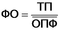 Коэффициент фондоотдачи определяется как отношение стоимости произведенной продукции (работ, услуг) в ценах предприятия-изготовителя (ТП) к средней стоимости основных производственных фондов (ОПФ) за анализируемый период: