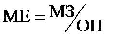 1) показатель материалоемкости продукции (МЕ), определяемый как отношение стоимости потребленных при производстве продукции материальных затрат (МЗ) к объему ее выпуска, выраженному в ценах предприятия-изготовителя (ОП):