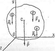 где Хk, YK, ZK - координаты точек приложения сил тяжести рк, действующих на частицы тела.