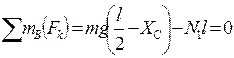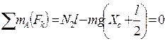 Находим силы реакции связей N1 и N2 следующих уравнений равновесия стержня: