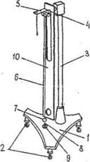 Установка (рис. 4.2) для определения момента инерции твердых тел представляет собой штатив с массивным основанием 1, установленный на регулируемых по высоте опорах 2.