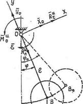 Изобразим действующую на маятник силу тяжести Р, реакции опор Х0 и У0 (силой тяжести стержня маятника пренебрегаем).