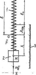 На материальную точку М массы в любом промежуточном положении действуют сила тяжести mg и сила упругости пружины F, Проекция силы F на ось ОХ согласно закону Гука
