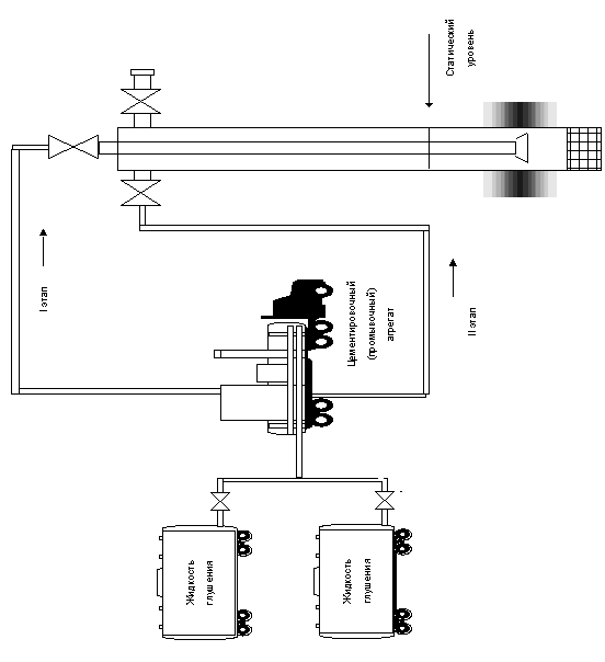 При этом на устье НКТ создать давление, превышающее замеренное перед глушением давление на 0,5-1 МПа. В процессе закачки ЖГ в скважину его постепенно снижают, оставляя к концу прокачки расчетного объема жидкости 0-0,5 МПа.