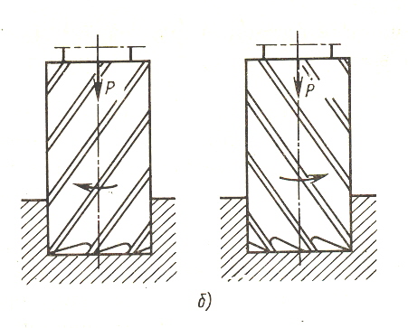 • При обработке плоскостей (Рис.) направление канавок совпадает с направлением вращения. В этом случае осевая составляющая силы резания направлена к шпинделю станка, а сход стружки обеспечивается от шпинделя.