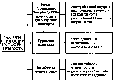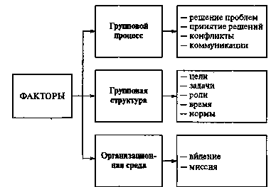 Под групповой структурой следует понимать ясные цели, мотивирующие задачи, ясно определенные роли, достаточное время, эффективную групповую культуру, групповые нормы.