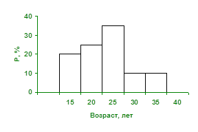 При его построении объединялись данные, относящиеся к интервалам 15-20 и 25-30