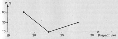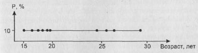 а) Мы прибегли к определенному “сжатию” информации только потому, что не имели возможности прямо противоположного способа действий: скажем, измерения возраста с точностью до одного месяца и использования репрезентативной выборки в сотни тысяч единиц. Имея возможность сделать это, мы получили бы полигон, неотличимый на глаз от непрерывной кривой.