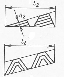 - Прямые канавки (рис. 10. а) проще в изготовлении, но создают неопределенное направление схода стружки и различные по величине боковые передние углы на правой и левой стороне профиля, что приводит к снижению стойкости.