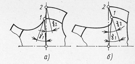 | Рис. 10. Влияние формы канавки на величину передних углов |