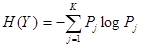 Пусть случайная величина Y принимает конечное число значений 1,2,..., k с вероятностями, равными, соответственно, Р 1, Р 2,..., Рk. (Напомним, что вероятность какого-либо значения для выборки отождествляется с относительной частотой встречаемости этого значения). Введем обозначение: