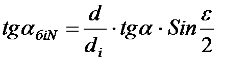 Заднийугол на вершине должен обеспечивать боковые задние углы в пределах 15…20΄. Кинематический задний угол отличается от статического (рис. 23) и определяется по формуле: