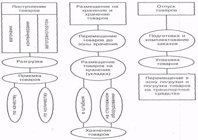 Хранение товаров на складе предполагает выполнение следующих операций: организация складского пространства; размещение товаров; создание необходимых условий хранения и охраны товаров; организация учета товаров; движение и перемещение товаров; обеспечение возможности использования подъемно-транспортного оборудования.