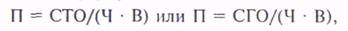 где: П — производительность труда работников склада (руб./человеко-час или т/человеко-час); СТО — складской товарооборот (руб.); СГО — складской грузооборот (т); Ч — численность работников склада; В — временной интервал, для которого исчисляется производительность труда, например час.