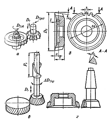 | Рисунок 18.4. Схемы работы и конструкции зуборезных долбяков |