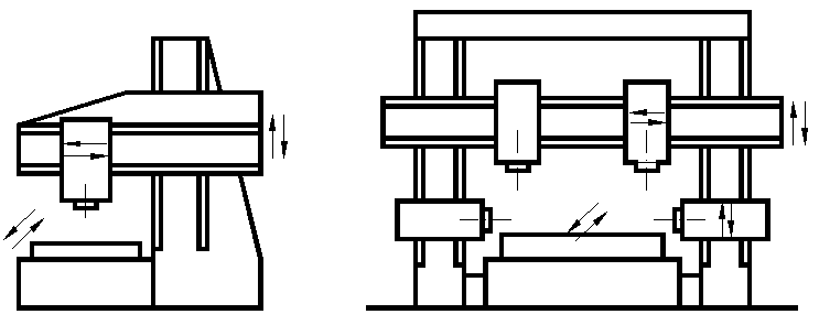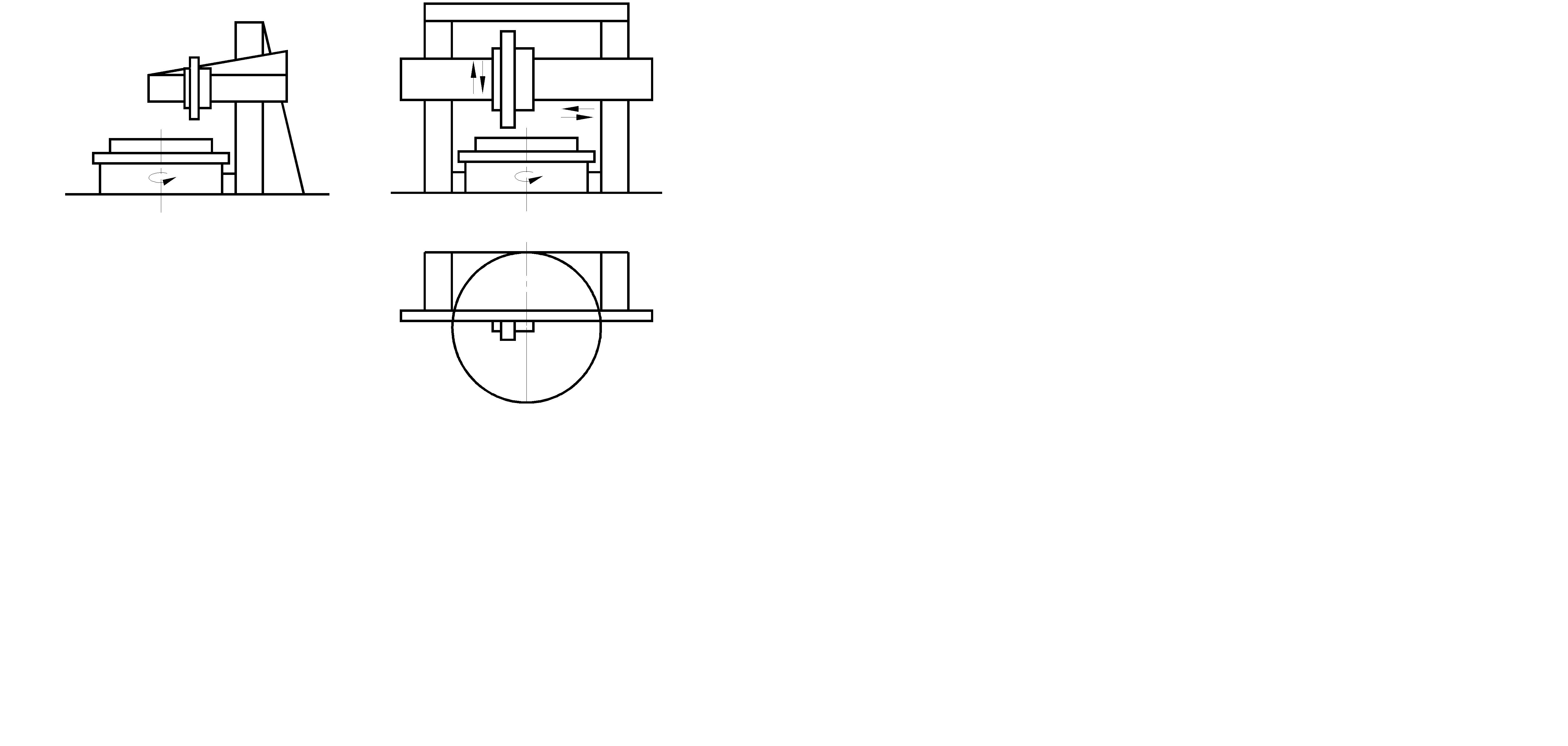 Токарно-карусельные. Основными размерами карусельных станков является наибольший диаметр и наибольшая высота заготовки. Карусельные станки имеют максимальный диаметр обработки от 800 до 2500 мм. Станки с диаметром обработки до 1600 мм изготавливают одностоечными, а больших типоразмеров – двухстоечными. Первые имеют на траверсе один вертикальный суппорт с револьверной головкой и один горизонтальный суппорт на стойке. У вторых на траверсе два вертикальных суппорта и один или два боковых, горизонтальных - на стойках.