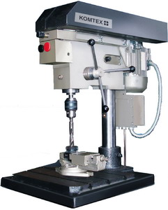 · Настольно-сверлильные. Настольно-сверлильные станки – самого малого ипоразмера среди сверлильных станков. Они устанавливаются на столе и предназначены для обработки отверстий в мелких и средних деталях. Позволяют сверлить, рассверливать, зенкеровать и зенковать, развертывать отверстия диаметром до 10-18 мм, нарезать метрическую резьбу метчиками в изделиях из черных и цветных металлов, неметаллических материалов. Частота вращения шпинделя в них регулируется перекидыванием ремня на 3-5-ступенчатых шкивах. Эти станки эффективно используется в условиях промышленных предприятий, ремонтных мастерских и в бытовых условиях в индивидуальном, мелкосерийном, иногда в крупносерийном производствах.