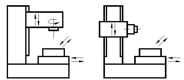 · 1. Горизонтально-расточные. В горизонтально-расточных станках основной размер – диаметр шпинделя. Главное движение резания – вращение шпинделя или вращение планшайбы. К подачам кроме движения стола и бабки относятся ещё осевое движение шпинделя и радиальное движение резцового суппорта на планшайбе. На этих станках могут выполнятся следующие работы: