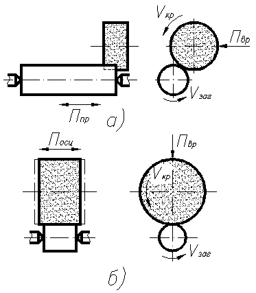 Рисунок 8.4 схемы бесцентренного шлифования: