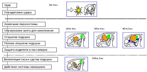 Вот схема работы системы подушек безопасности: