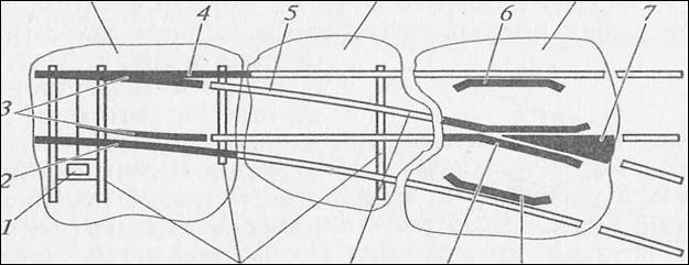 3) (II) - Соединительные пути между стрелкой и крестовиной (переводная кривая).