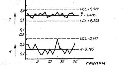 -R)-карта. Для её составления собирают предварительные данные измерений характеристик (таких, как длина, толщина, вес, прочность, влажность и т.д.) в количестве порядка 100. Эти данные делятся на 20-25 групп по 4-5 значений в каждой. Для регистрации и систематизации предварительных данных пользуются специальными бланками контрольных листов.