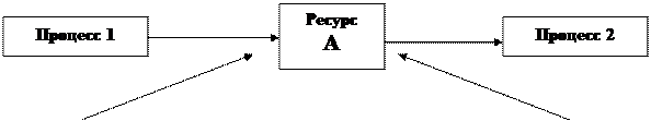 | Выход процесса 1 | Граница процесса: переход ответственности за ресурс А | Вход процесса 2 |