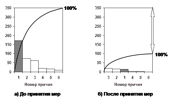 Рисунок 15 – Диаграммы Парето до и после принятия мер