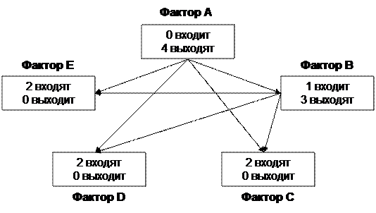 3. Были идентифицированы все возможные причинные взаимосвязи между каждым фактором и другими и показаны стрелками на графе (см. рис. 18).