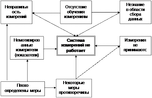 Конкретная ситуация: Компания потратила много времени и денег на внедрение системы измерения показателей. Однако эта система так и не нашла широкого применения в компании. Сотрудники компании не любили работать с ней, а в некоторых случаях просто ее саботировали. Руководство компании решило проанализировать причины данной ситуации.
