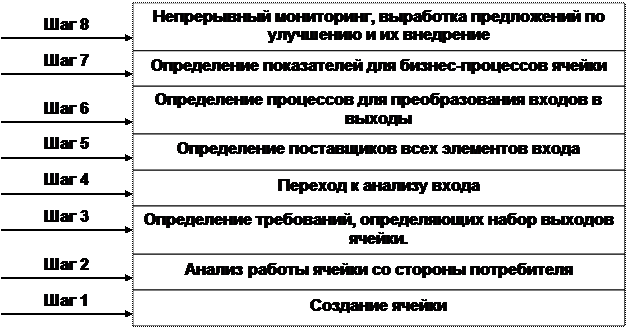 8 шаг. Непрерывный мониторинг, выработка предложений по улучшению и их внедрение. Ячейка должна регулярно повторять анализ требований ко входам и выходам, чтобы быть в курсе происходящих перемен.