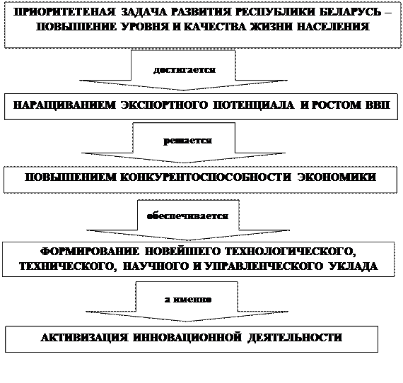 Решение приоритетной задачи развития Республики Беларусь – повышение уровня и качества жизни населения посредством активизации инновационной деятельности – наглядно представлено на рис. 2.1.