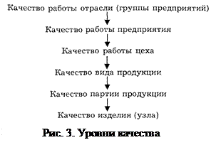 ♦ качество технологии — число нарушений в технологическом цикле. Каждому уровню производства соответствует и свой уровень качества (рис. 3).