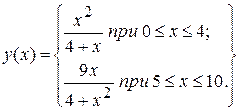Рассчитать значения фукнкции у(х) для x, изменяющегося от 0 до 10 с шагом 1, и построить график.