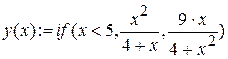 Такая функция относится к условным операторам, который в Маткаде записывается в виде: if(условие, y1, y2), и при выполнении условия даёт значение у1, а при невыполнении условия у2.